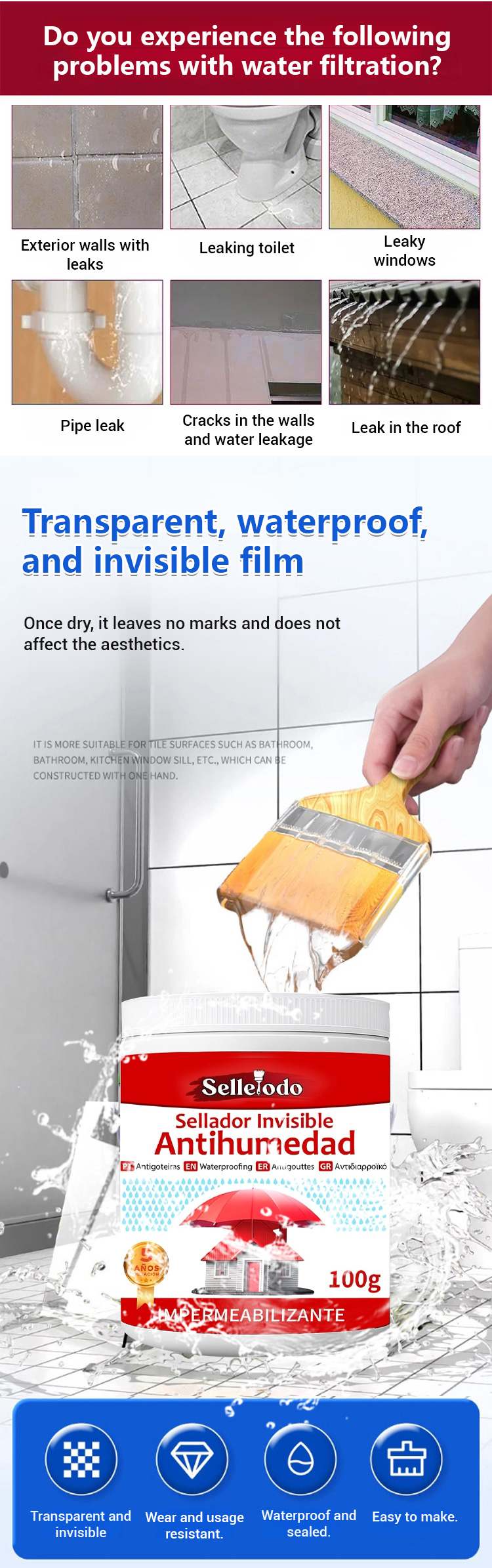 Tile-Free Transparent Sealant for Roof and Wall Waterproofing